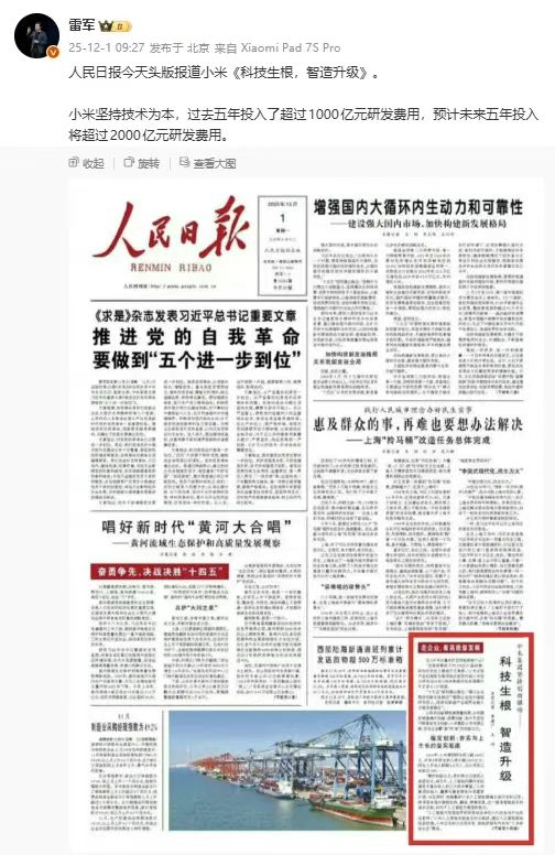 与此同时,小米还登上了《人民日报》的头版,这含金量相信不用多说了吧。