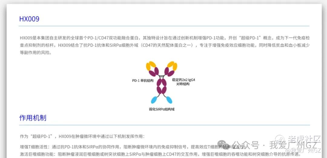 2儿子:HX009,全球唯一的PD-1/CD47双抗,临床Ib/II期,治黑色素瘤和淋巴瘤。
