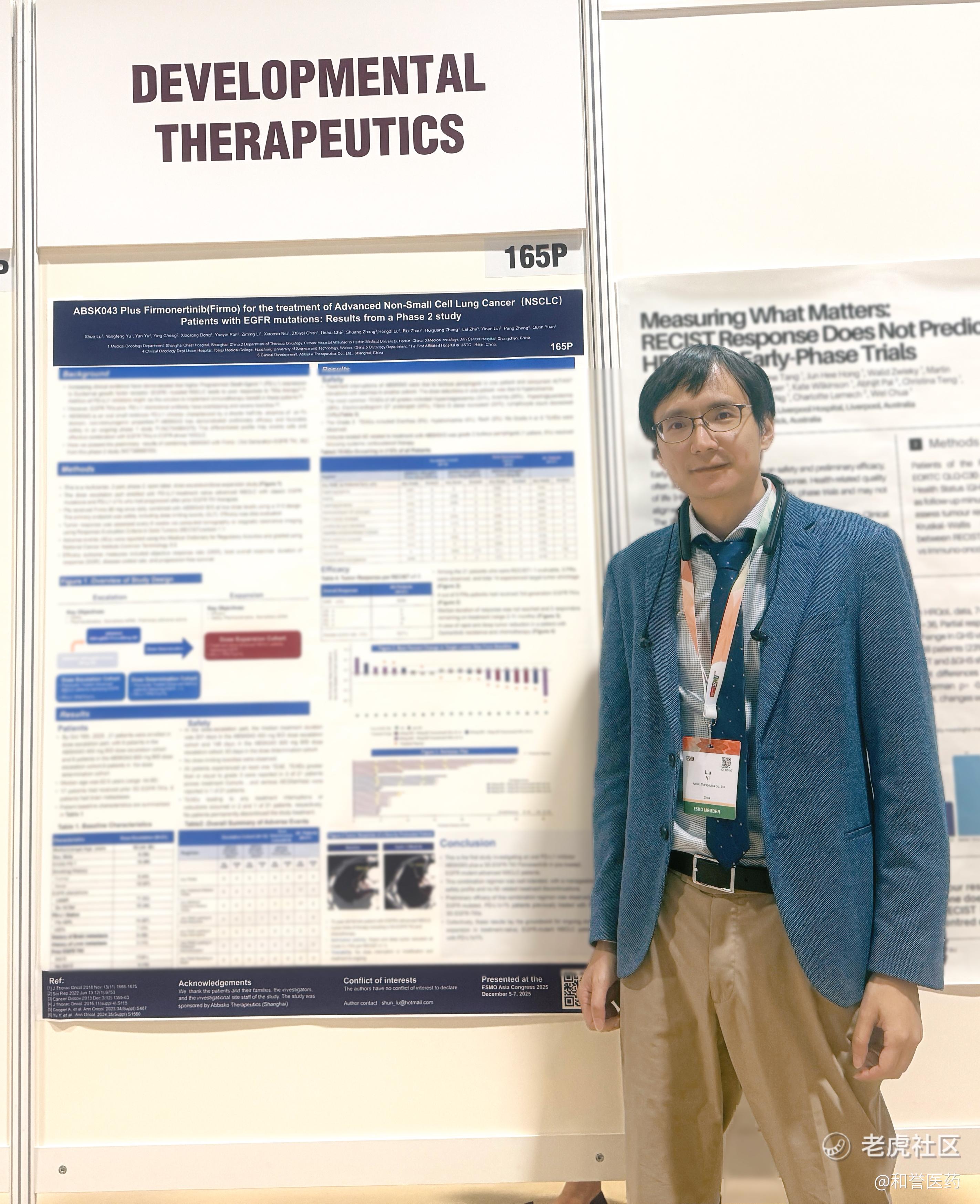 在本届ESMO Asia 2025年会上,上海交通大学医学院附属上海胸科医院陆舜教授以壁报形式展示了正在开展的II期研究(ABSK043-202)剂量递增阶段的积极结果。该研究分为剂量递增和剂量扩展两部分。剂量递增阶段共纳入21例EGFR突变且PD-L1阳性的经治晚期NSCLC患者,其中17例患者曾接受过第三代EGFR-TKIs治疗。
