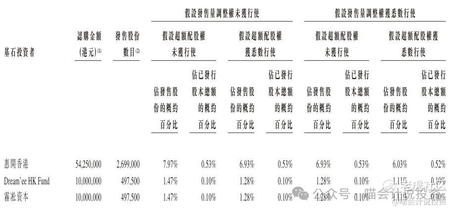 基石投资者:做梦一样的基石,比例也就11%不到点(2分)。