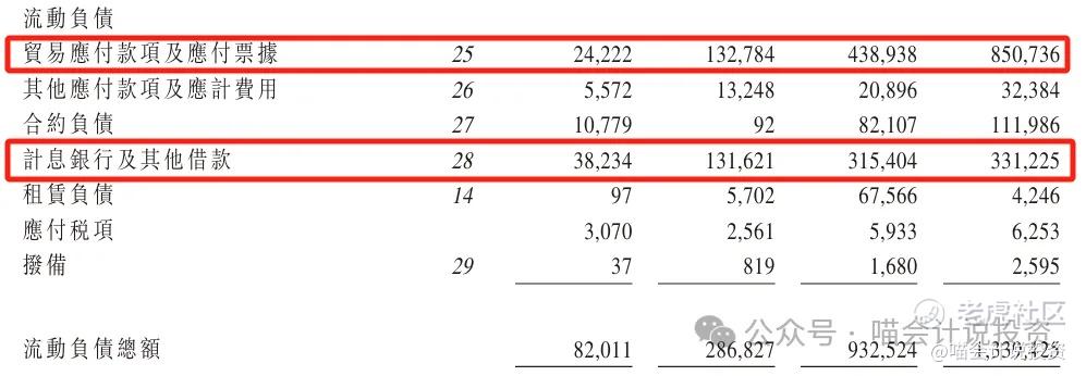 资产负债表小结:扩表扩的太凶,几乎所有重要的资产科目都在占用资金——PP&E、存货、应收,贷方就是靠增加贸易应付和长短期借款来维持。