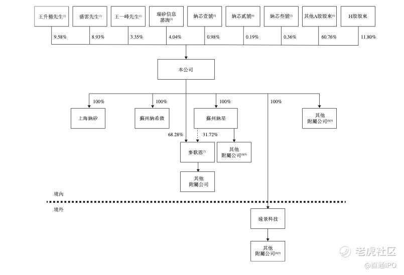 招股书显示,纳芯微在香港上市前的股东架构中,直接持股10.87%的王升杨、直接持股10.13%盛云、直接持股3.80%的王一峰为一致行动人,连同其控制的实体,合共持股约31.11%,拥有31.13%投票权(不计库存股)。IPO后,前述三方持股比例降至9.58%、8.93%、3.35%,合共控股约27.43%。