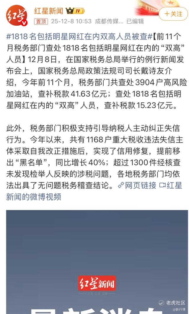 1818名包括明星网红在内的双高人员被查