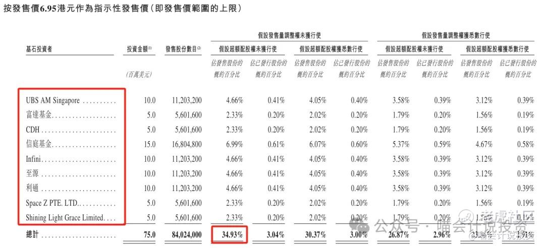 基石投资者:UBS、Fidelity,都是大牌,按最高价计算的基石比例约为35%(8分)。