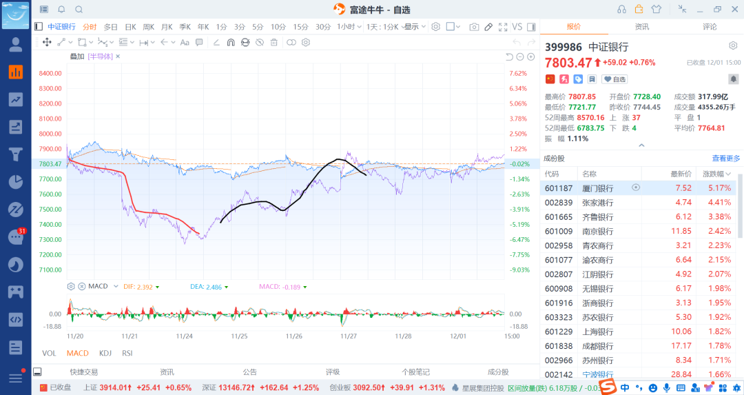 比如上上周跌了,科技股就比金融跌的多了,同样反弹起来后也是比较快速了,后续大盘股(金融类别)的会补涨了,而且大概率是证券,还有就是其他各龙头的蓝筹股了,今天的宁德时代就很强了。