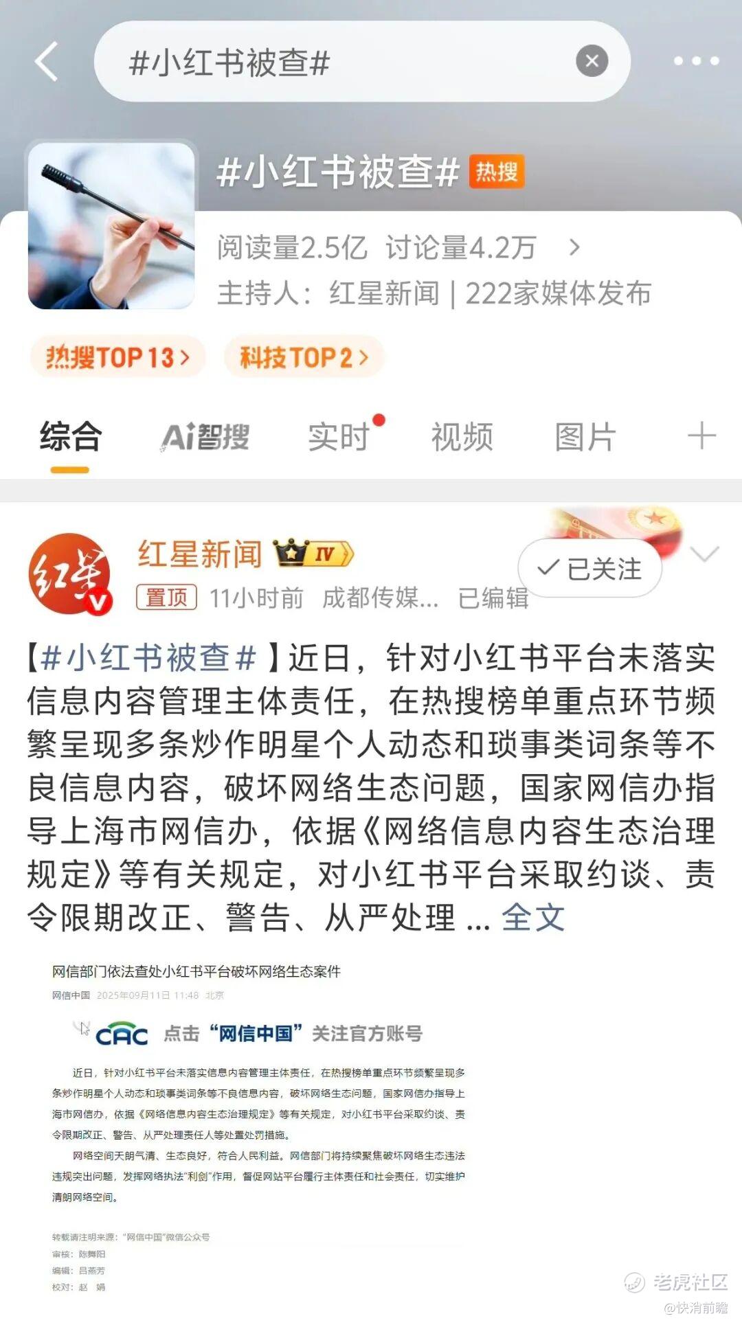 这是小红书创立12年来首次被监管部门单独点名约谈。不少网友将此事戏称为小红书的“塌房”时刻。一时间,这家以往以内容调性见长的社区,被质疑为了流量“不择手段”。此次风波与某当红明星转战小红书密切相关:该明星因与经纪公司纠纷注销微博账号,改在小红书频繁露面,引发巨大关注。一度小红书热搜榜上近20个词条都与其相关,其小红书粉丝也从430多万暴增到2300多万。许多用户对此颇有微词,反复点击“不感兴趣”却依然被推送相关内容,质疑平台为了留住明星和流量而罔顾用户体验。直到网信部门出手约谈,小红书才对热搜乱象进行整改。