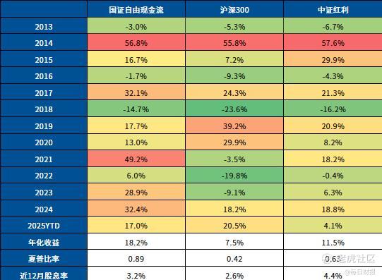从收益表现上看,国证自由现金流指数长期收益表现优异,2013年以来年化收益18.2%;高于中证红利的11.5%,且在高收益的前提下波动较低,风险收益比出色。分年度来看,指数自发布以来在过去13年中有10年录得正收益,在下行市中韧性凸显,在上行市中也有不错的收益,可以做到穿越周期。