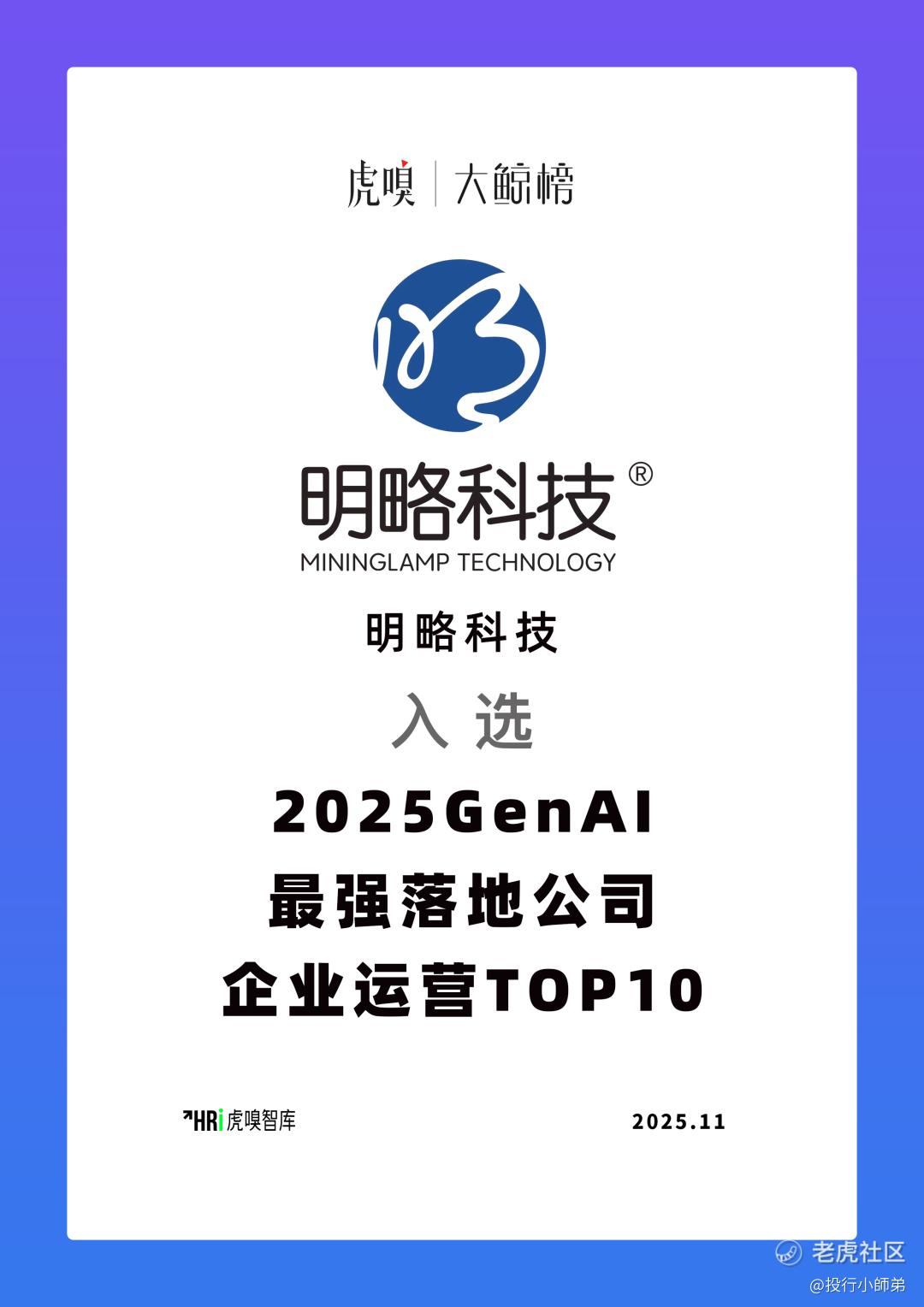 基于DeepMiner专有大模型产品线和多模态数据智能技术体系,明略科技(2718.HK)以“可信数据+可信智能体”双轮驱动,赋能企业从智能分析到智能决策全流程,成功入选企业运营板块GenAI最强落地公司TOP10。