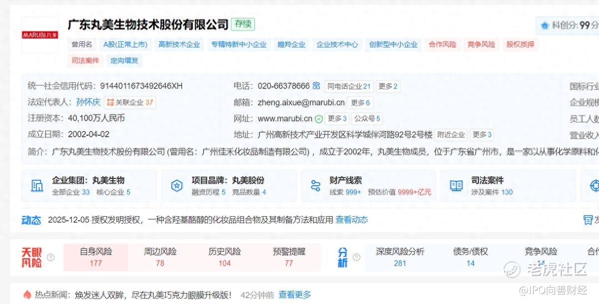 要知道,以同样在冲击港股IPO的丸美生物为例,天眼查APP显示:去年12月,丸美也宣布了改名,但却是将公司证券简称从“丸美股份”变更为“丸美生物”。并在当年年报中表示,更名标志着公司从传统美妆企业向生物科技美妆公司战略转型。