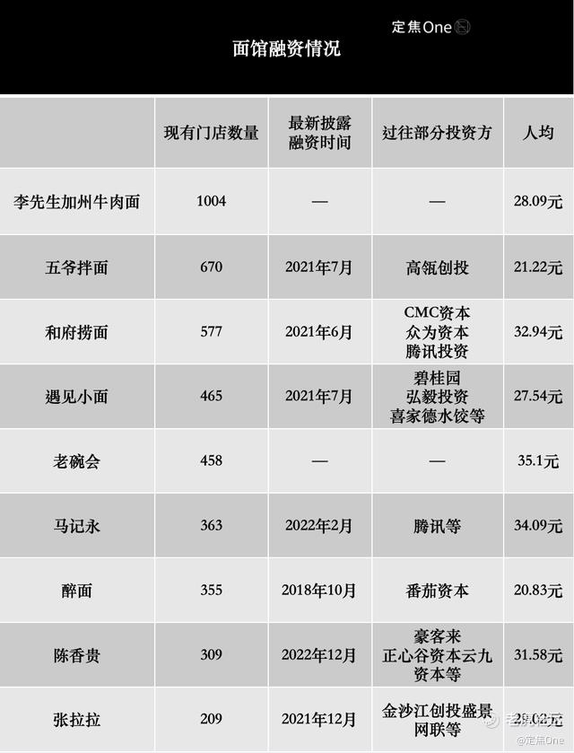 更直观的信号来自资本端。梳理六大面馆新贵的融资历程不难发现,它们最近一次传出融资消息,还停留在2022年底。此后近三年时间里,这条赛道再无重磅融资动态,资本对吃面的兴趣似乎已消耗殆尽。