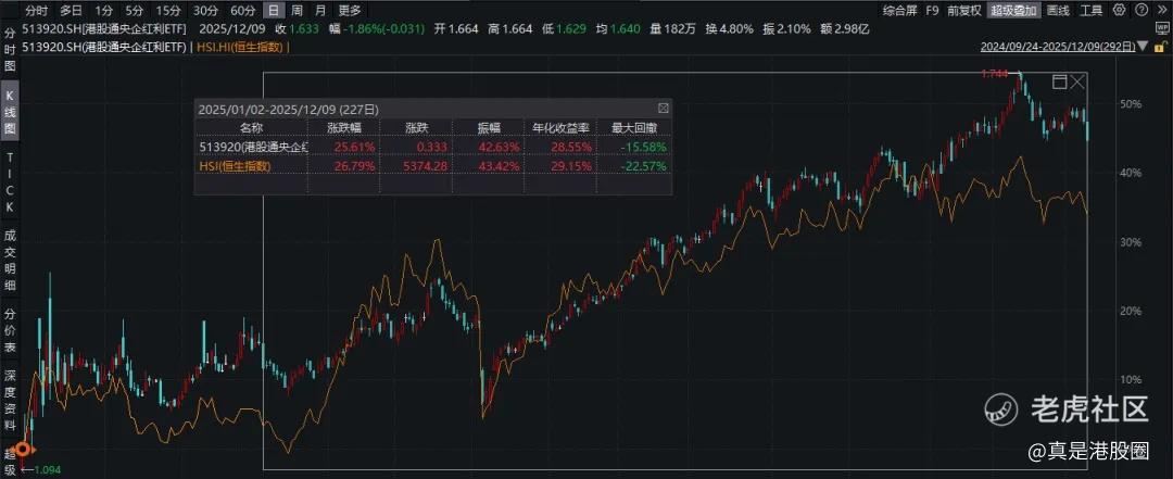 那么,在市场流动性偏弱的阶段下,其实持仓配置可以考虑增配红利股作为防守。例如,港股通央企红利ETF(513920) $港股通央企红利ETF(513920)$ 在近期港股的回调里尤为坚挺。
