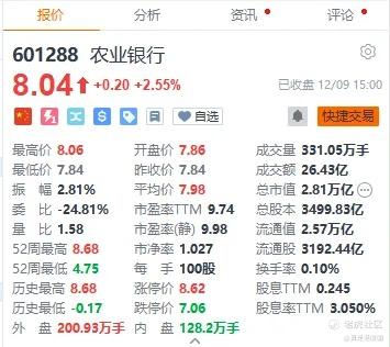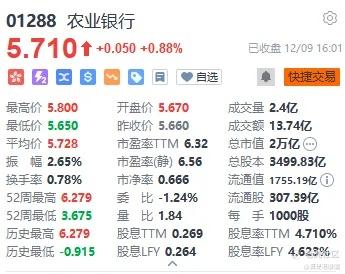 举个例子,H股农业银行的股息率是4.71%,而A股的农业银行股息率是3%。