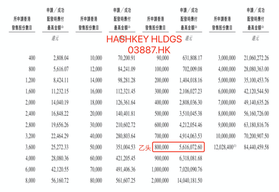 参考上一只新股宝济药业有28.3万人申购,其中乙组2.2万人。HASHKEY乙组按照2万人申购算,预估乙组第四档稳中1手。