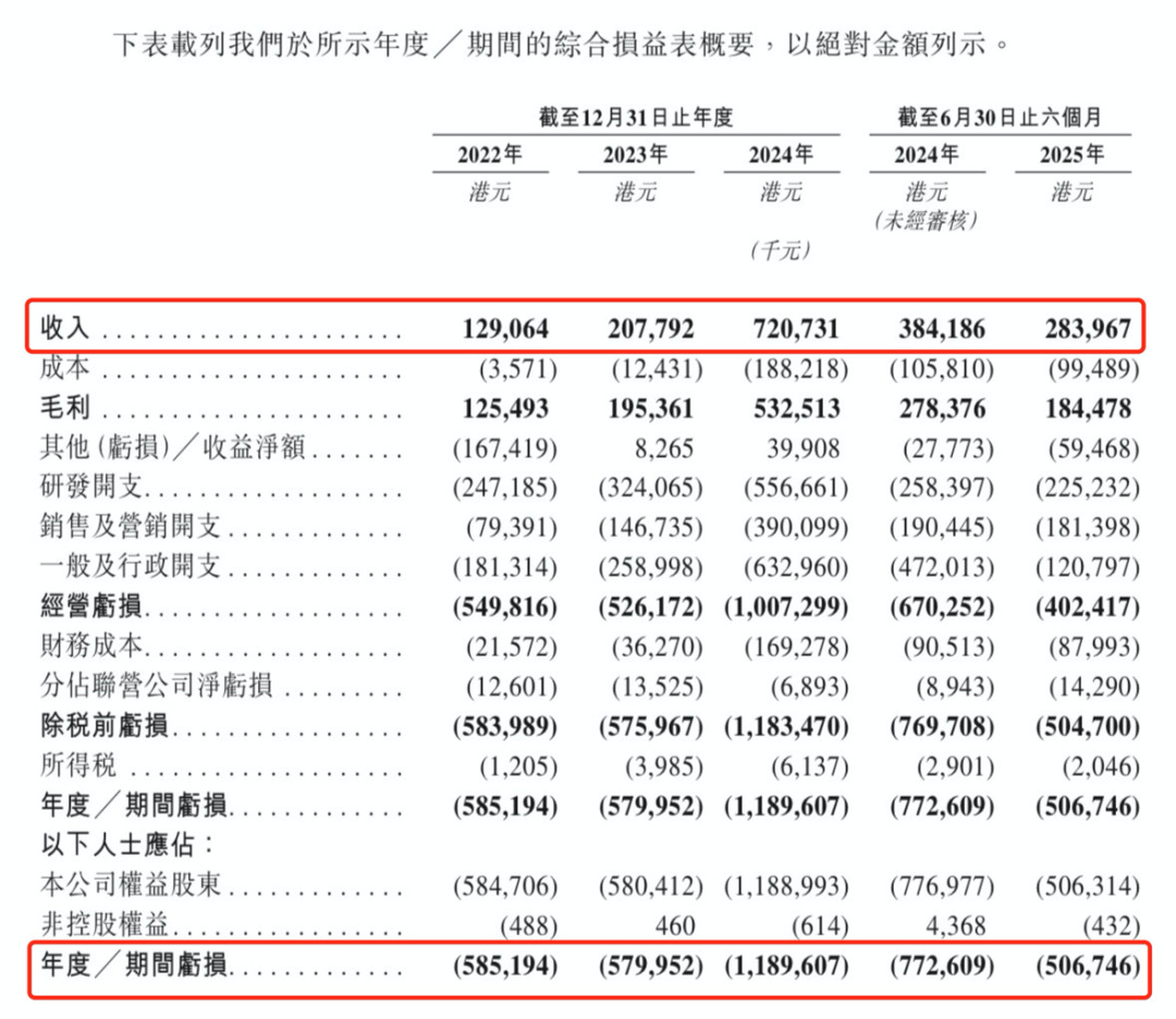 公司毛利率呈现下降趋势,从2022年的97.2%逐步降至2025年上半年的65.0%。这反映出随着业务规模扩大,运营成本相应增加。