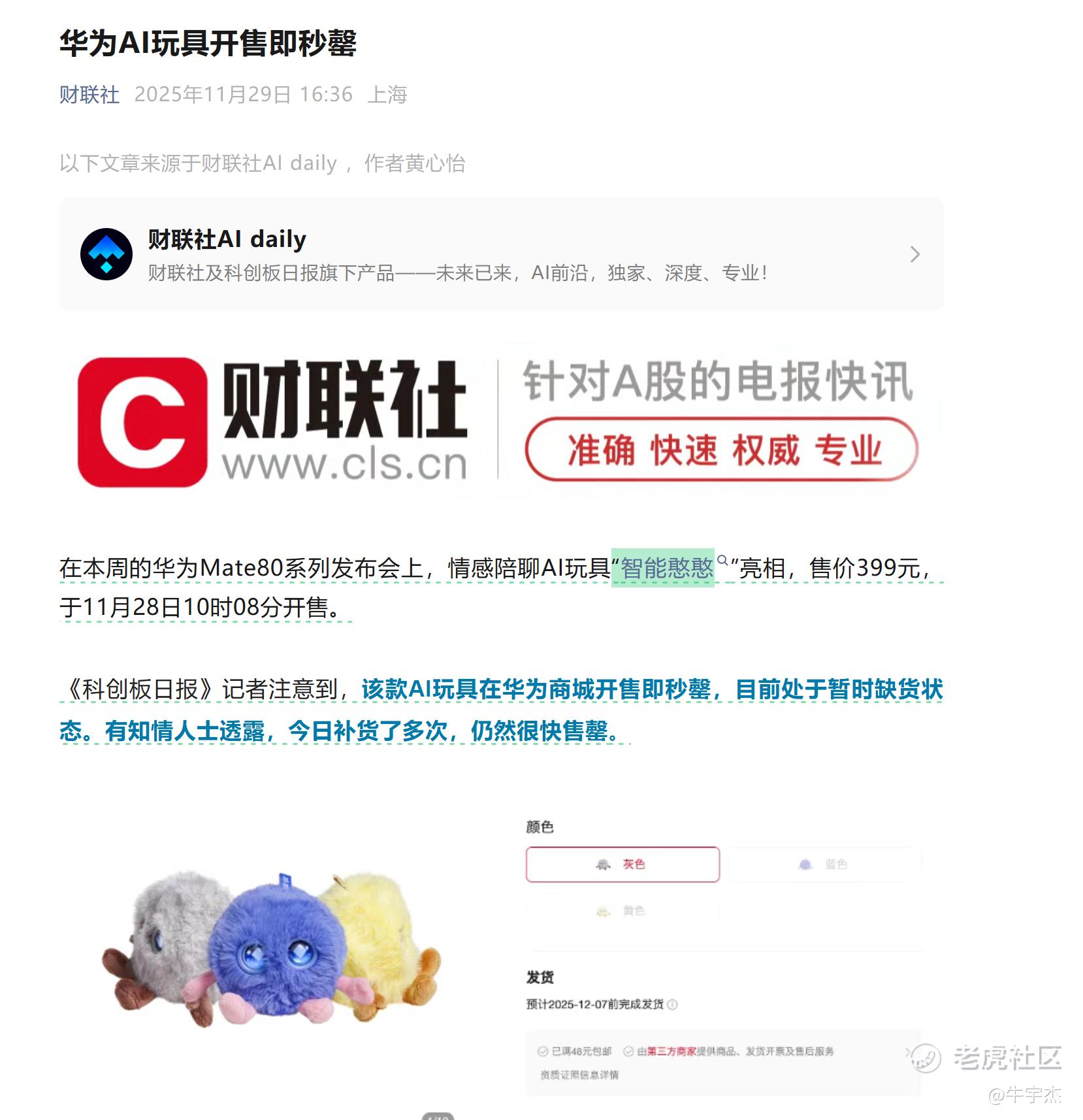涂鸦智能和珞博智能合作了,之前HW mate 80 Pro MAX发布的智能憨憨就是珞博智能,一发售直接卖爆了。广和通发了个公众号,两天涨了30%,涂鸦智能这深度合作,是不是也得表现一下啊