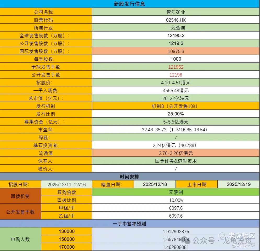 智汇矿业于2020年12月,向上交所提交上市辅导备案,一直到2024年都没上去,只得放弃,最后选择联交所;本次引入2位基石投资者,认购2.24亿港元,占比40.78%。
