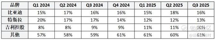 中国车企在世界范围内大放异彩。比亚迪在欧洲、东南亚和拉美等海外市场表现强劲,出口量超过15万辆,海外市场贡献率达27%。由于美国消费者赶在2025年10月EV税收抵免取消前抢购,推动特斯拉在美国市场的销量增长,但这种政策性带来的销量增加偶然性太强,特斯拉前有比亚迪后有吉利,压力较大!