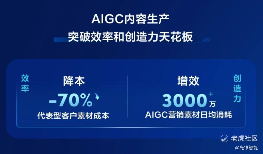 针对这个问题,快手通过AIGC内容生产来实现降本。其中,可意大模型负责文字素材的输出,可图生成AI图片,可灵支撑短视频广告营销;女娲数字人直播等AI产品则用来满足多元化素材的需求。快手官方数据显示,AIGC内容生产可以将素材制作成本降低70%。
