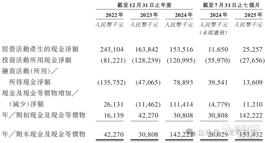 公司仍处于“烧钱”阶段——2022-2024 年及 2025 上半年经营现金流持续为负(三年半合计净流出约 7.6 亿元),账上现金及等价物由 2024 年底的 3.1 亿元降至 2025 年 6 月末的 1.9 亿元,但上市募资 13.09 亿港元到账后,可支撑 16-20 个月运营现金需求。