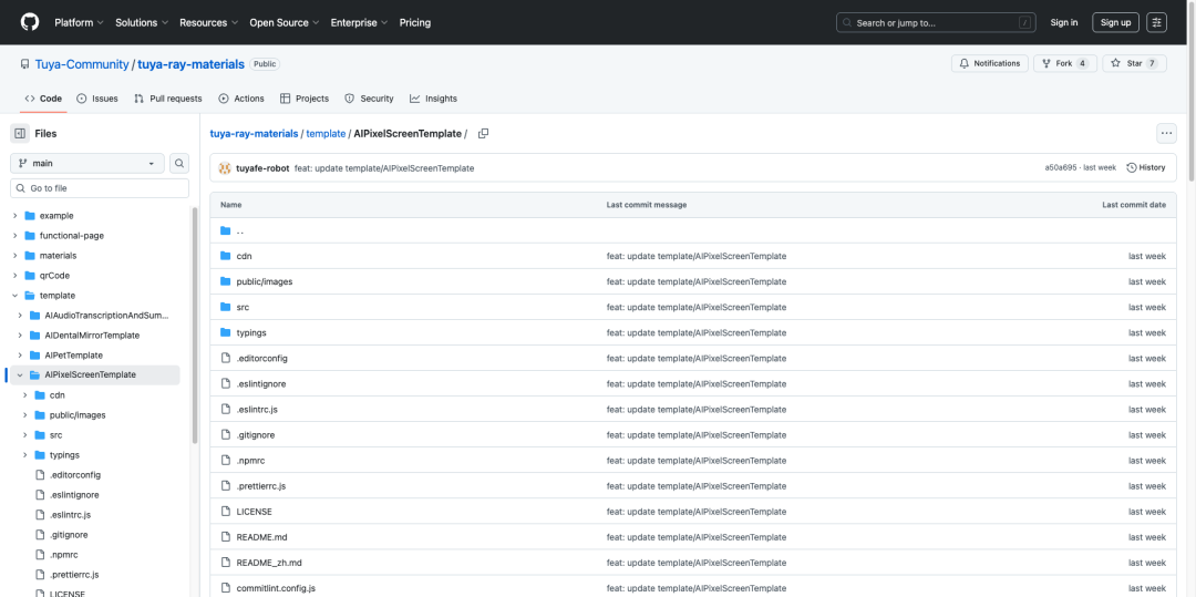 AI 像素屏文生图模板源码: https://github.com/Tuya-Community/tuya-ray-materials?path=template%2FAIPixelScreenTemplate
