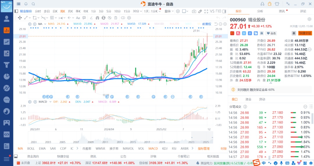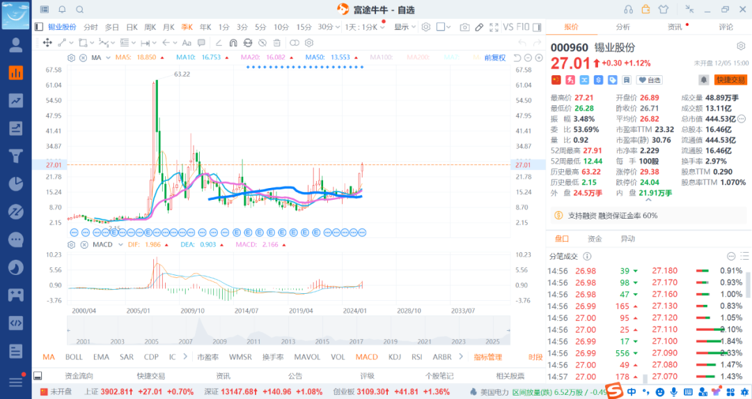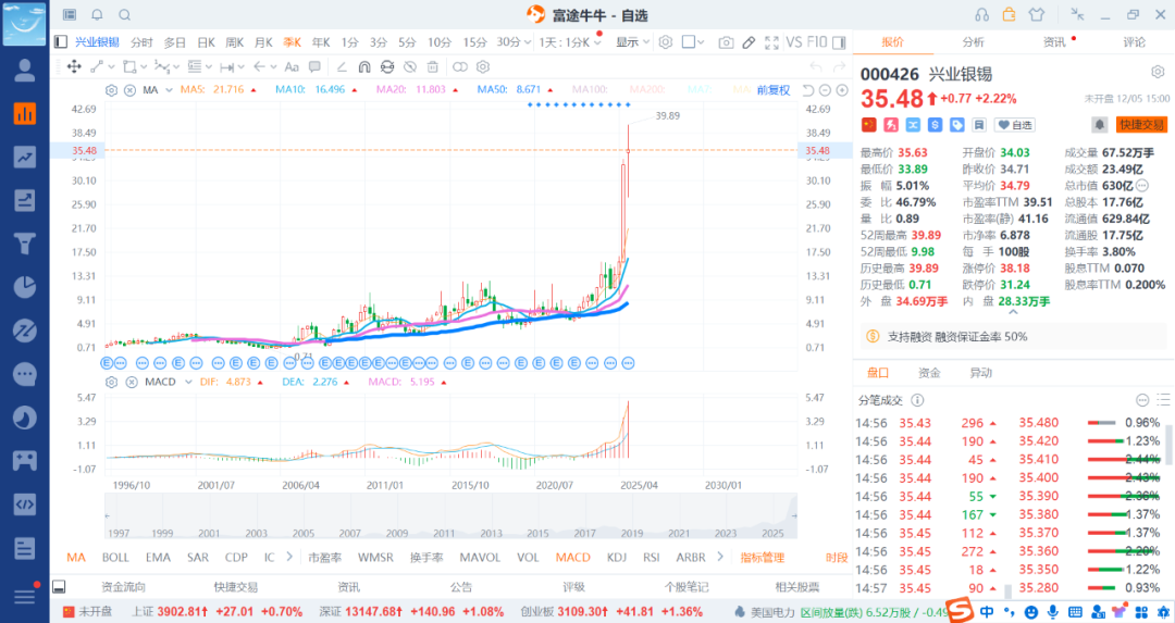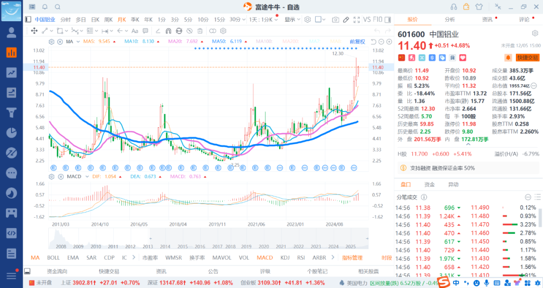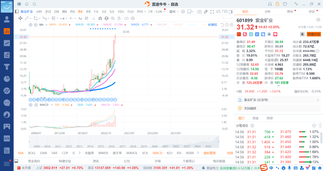 这点铜,铝,锡就非常的明显了,单独看紫金矿业就知道多猛烈了。