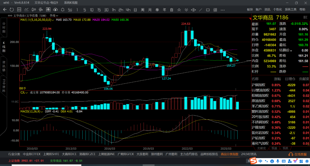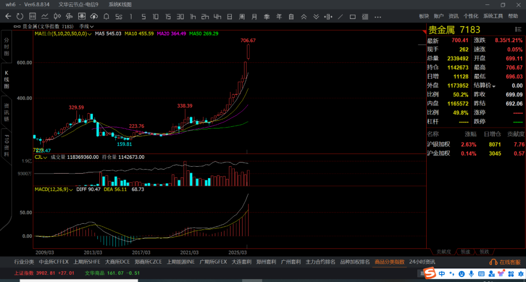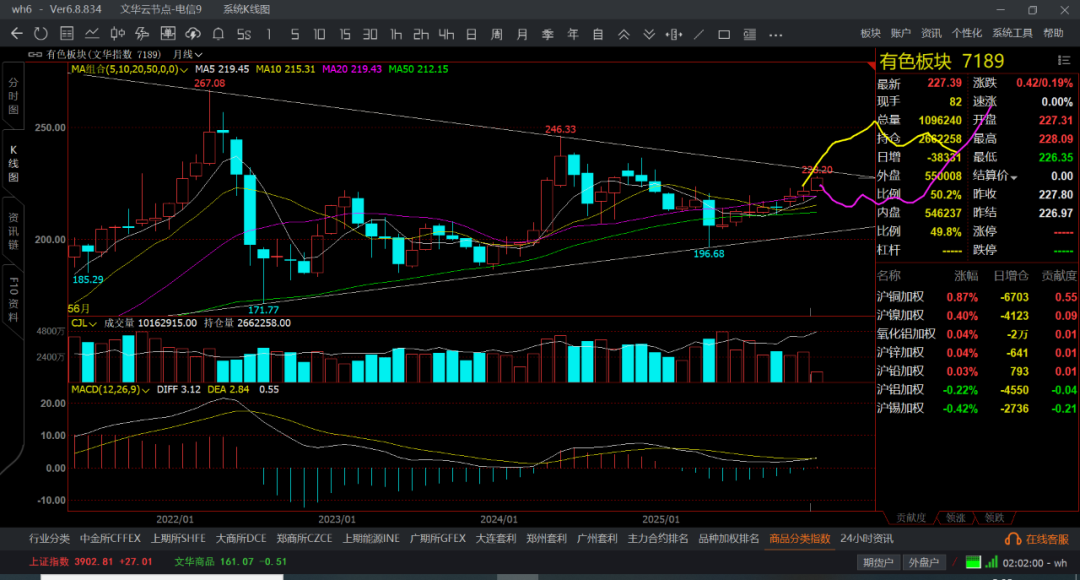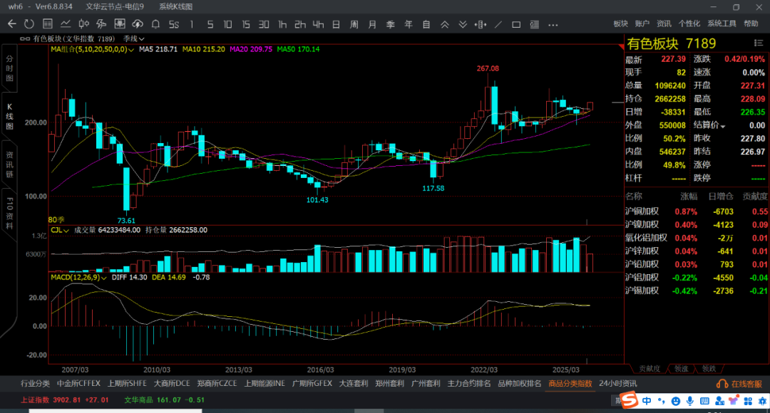 其他的我就不贴了,贵金属走出了牛市毋容置疑,而有色也慢慢的走强,其实就是矿少了,叠加工业需求多了,ai这个核心了,还有就是美元贬值,市场趋势自我加强等等,十多二十年不涨的相关股票都起来了,走牛是毋容置疑了,尤其是现在信用货币出现了问题,那么水也会留到有色这块。