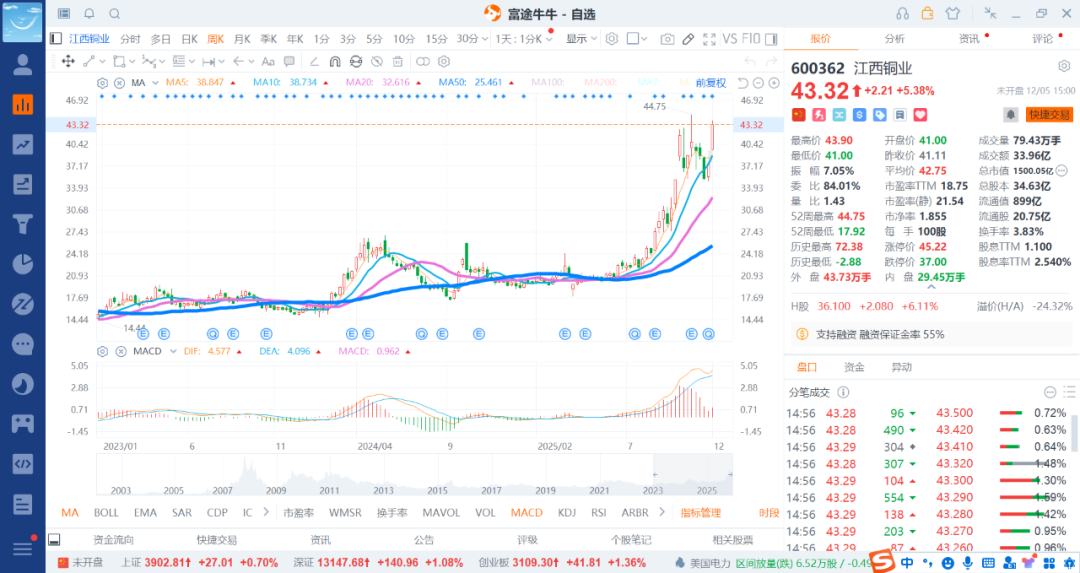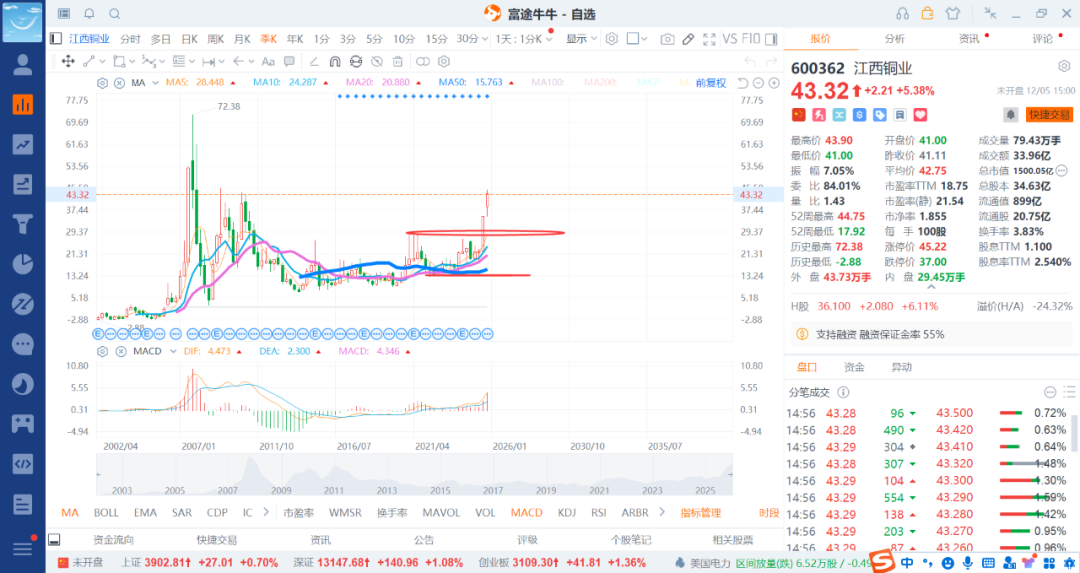 比较猛踏空的就算了,少赚点但稳定和安全才是第一要位,比如江西铜业看到60/80,过百也没啥问题,中国铝业看到20/25附近吧。