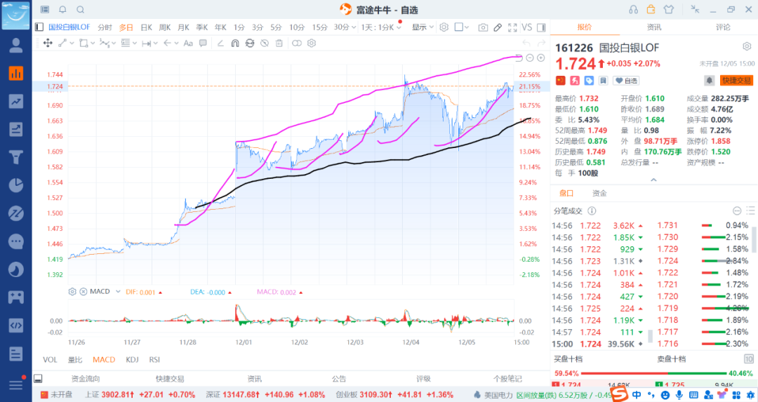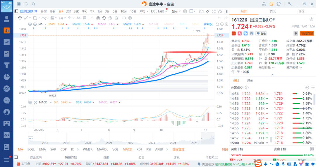 白银也是一段段的吃,尤其是到45/50美金之后的玩法了,可能会更高,也可能是震荡,但大跌的概率真的是太小了,所以每次跌不少的时候就是给你送钱的机会了,这点参考黄金就知道了。