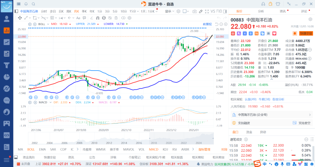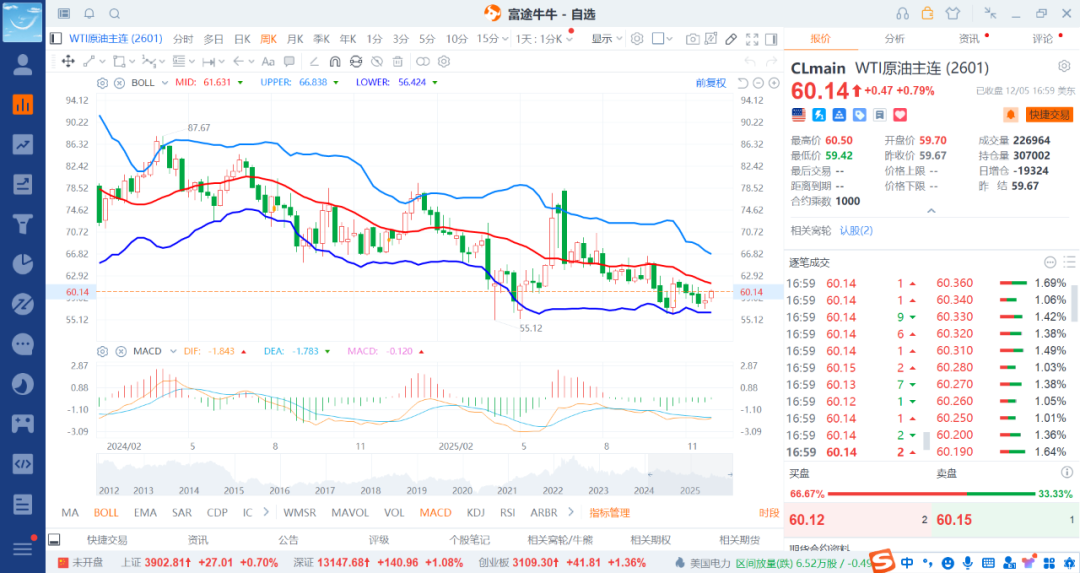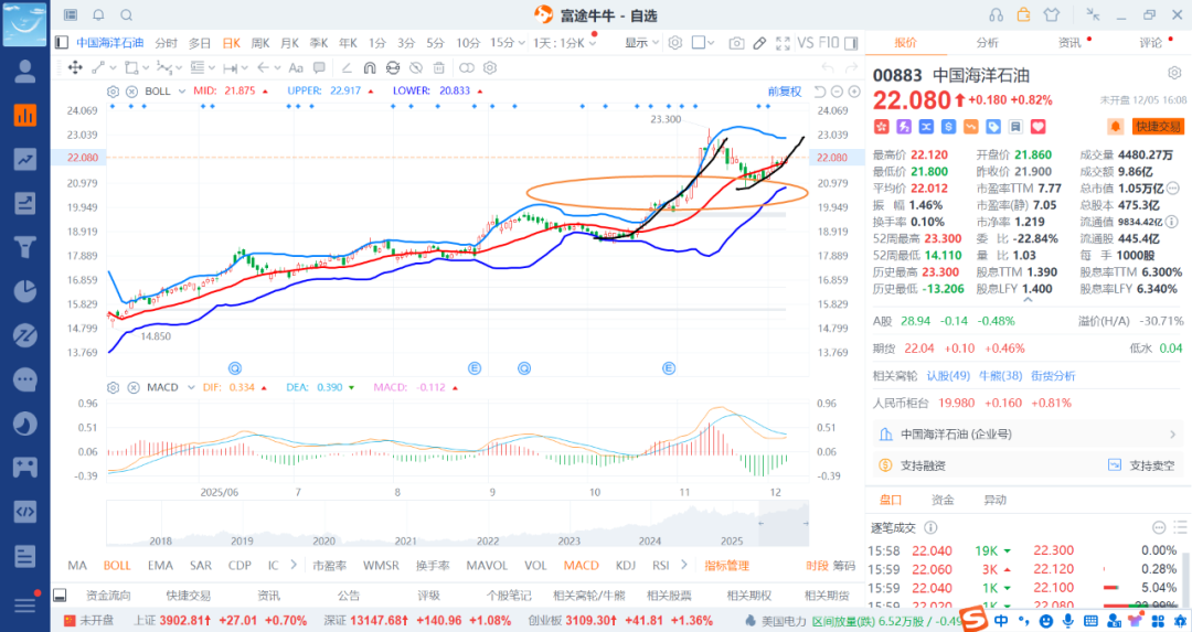 现在原油是跌也跌不了多少,涨也涨不动,就是还持续的在横盘震荡,或者是偶尔给你打开一个空间后给你反走了,所以没啥意思,要做也就是吃点权利金罢了,比如长线低吸买多同时叠加卖购的玩法,亦或者是够低的卖沽等等,结合走跌就买点原油类的股票就很好了,最近海油涨的还不错了,未来还是看涨,年化10%是妥妥的没啥问题了。