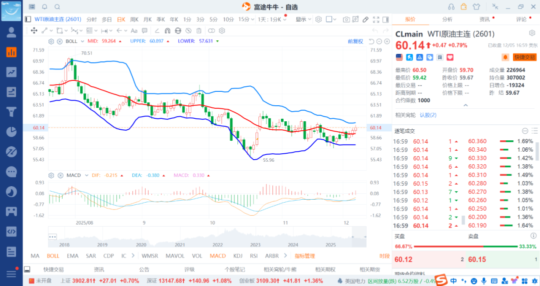 美原油60附近往下买,间隔三五美金为一个单位了,10美金就是叠加多一些头寸即可,往上就是低位买了就抛售,也是间隔三五美金既可以了,给合适价格就低位进货,不给就不买,同样高位不追高,持续的涨,就持续的在之前低吸的头寸慢慢的抛售就行了。
