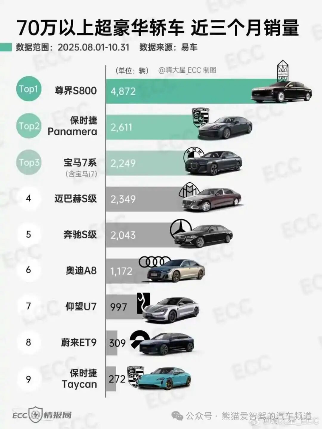 根据第三方数据,8-10月,尊界S800持续登顶中国市场70万级以上超豪华轿车销量榜首,并且大幅领先。11月,销量持续上升。