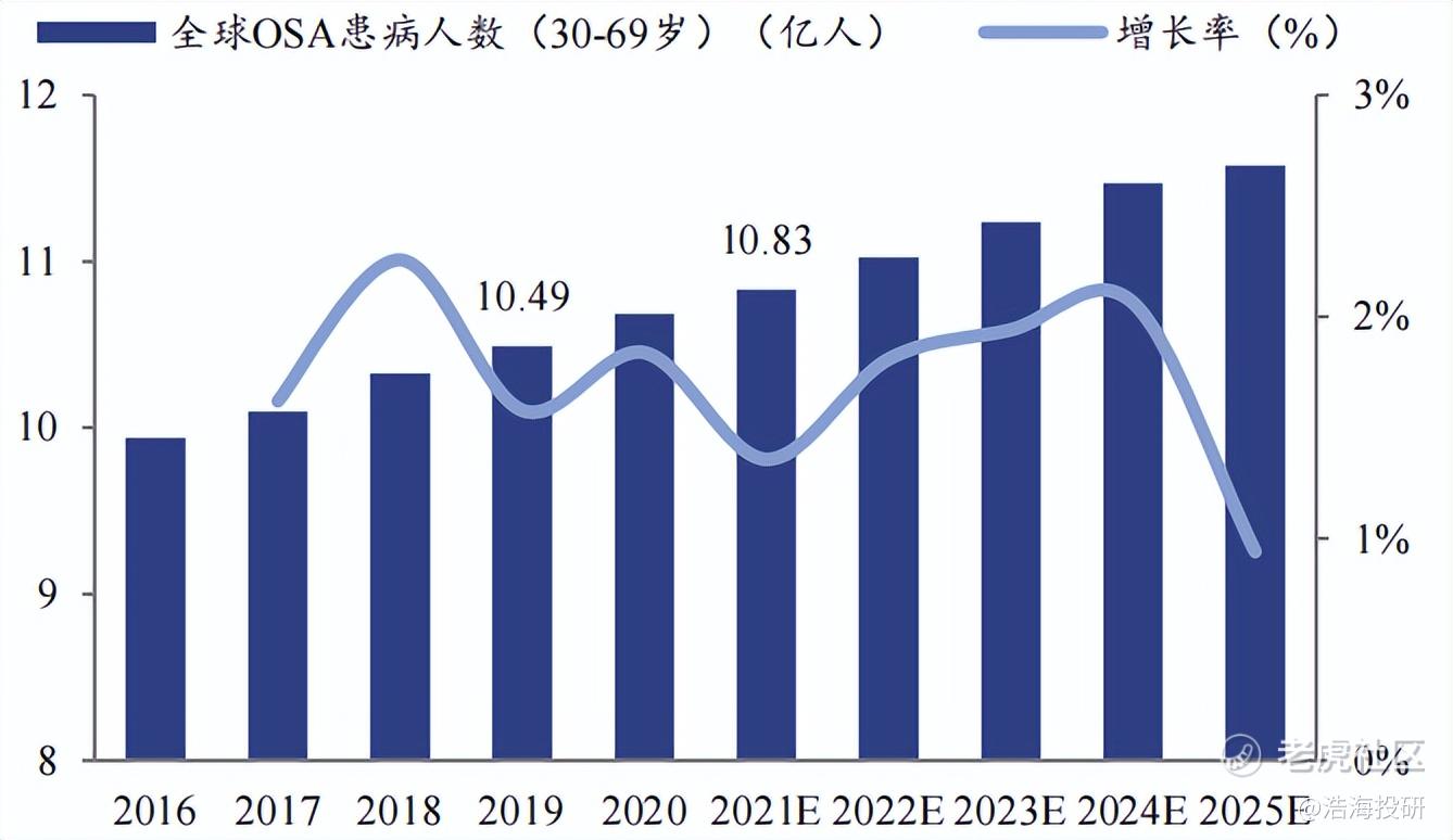2016-2025E全球OSA(30-69岁)患病人数 来源:弗若斯特沙利文分析,怡和嘉业招股说明书, 信达证券研发中心
