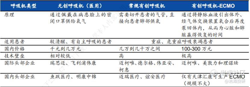 医用呼吸机一般分为无创和有创两种。无创呼吸机是通过面罩来供给氧气,院内主要用于清醒、有自主呼吸的患者,家庭场景的呼吸机也都是无创的。而有创呼吸机结构相对复杂,使用时需要切开患者的气管直接向肺部供氧,通常用于重症,已出现呼吸衰竭的患者,#ECMO(俗称“人工肺部”)就属于有创呼吸机。