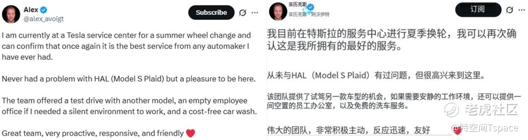 长期关注特斯拉的海外博主@Alex 总结道,“特斯拉广受青睐的原因不仅仅在于硬核的产品实力,也在于其提供的细致入微的客户服务和极快的响应速度,这是我体验过最好的服务。”