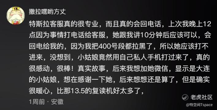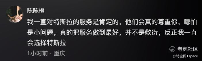 “特斯拉的售后真的尊重你,哪怕是小问题,也会把服务做到最好,反正我一直会选择特斯拉”;