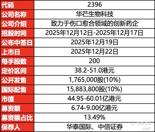 发行架构方面,华芢生物本次IPO由华泰国际及中信证券担任联席保荐人,并设置15%超额配股权,采取回拨机制B。需要注意的是,市场资讯显示本次未引入基石投资者,因此上市初期的“稳价锚”更多依赖绿鞋及交易情绪本身;公司拟全球发售1,764,800股,公开发售8,825手,每手200股;发行价区间为38.2–51.0港元,对应募资规模约6.74–9.00亿港元。