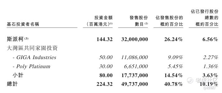 共2名基石投资者:招金矿业旗下斯派柯和大湾区共同家园投资,合计认购2.24亿港元,按发售最高价4.51港元计算,相当于此次全球发售股份的40.78%及紧随全球发售完成后已发行总股份的10.19%。