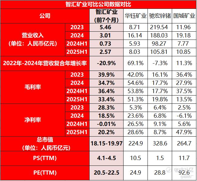 本文选取华钰矿业、驰宏锌锗和国城矿业作为智汇矿业的可比公司。