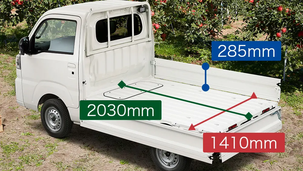 重中之重来了,sambar 的货斗大约 2 米长,1.4 米宽。
