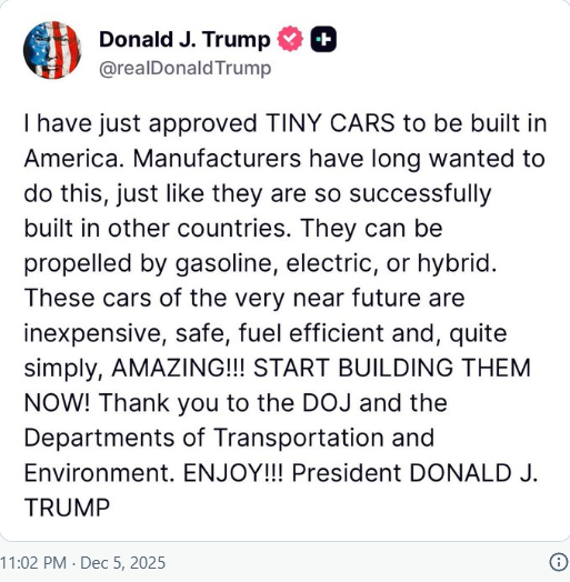 嗯?咱们印象里美国人不是都喜欢大车吗?咋现在来了个 180° 掉头。