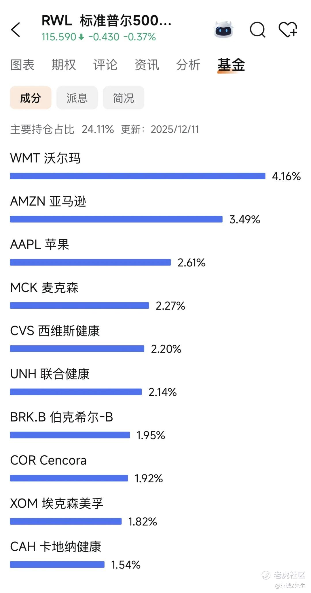 解决方案是景顺的标普500收益ETF( $Invesco S&P 500 Revenue ETF(RWL)$ ),其策略是按销售总额加权,单只股票上限5%,大幅缓解了科技集中度的问题,在保留科技敞口的同时,兼顾传统价值股。