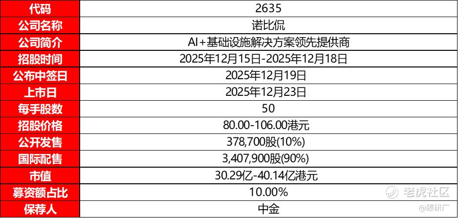 市场情绪层面,临近年末,港股打新市场迎来 “冲刺上市潮”,不少企业瞄准 12 月 31 日前完成挂牌以博弈 “入通” 资格,当前同期招股的新股已达 9 只,从时间窗口看,诺比侃与其中6只新股的招股日期冲突,仅希迪智驾、智汇矿业的招股周期与之错开——这种密集的新股供应,会直接分散打新资金的集中度,好处在于能够降低每个项目的孖展倍数、提升投资者的中签概率,截至12月15日18:30,诺比侃公配超购3.81倍,感兴趣的投资者可重点跟踪各新股的孖展动态,以此判断资金倾斜方向与实际认购热度,并据此设计适合自己的申购方案。