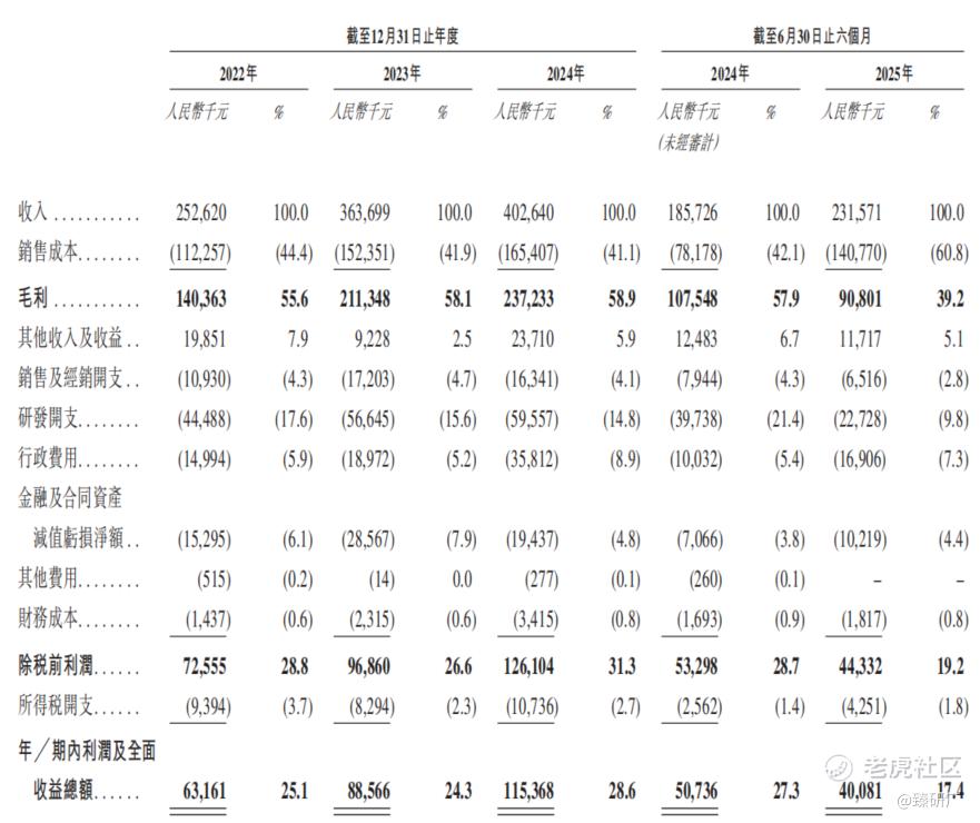 2022年-2025年上半年公司净利润分别为0.6亿元、0.8亿元、1.2亿元和0.4亿元,净利率分别为25.1%、24.3%、28.6%、17.4%。2022 - 2024 年净利润增长,是营收稳步增长与毛利率稳定在高位的共同作用,期间成本控制较好,未出现大规模侵蚀利润的因素。2025 年上半年净利和净利率下滑,直接导火索是毛利率的大幅下降,而研发、管理等费用并无大幅增长。