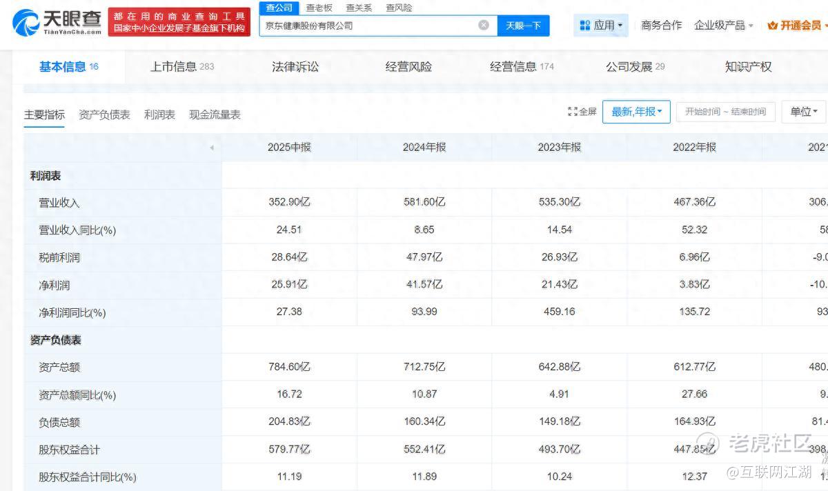 就像京东健康,天眼查APP显示:今年上半年营收352.9亿元,同比增长24.51%;归母净利润25.96亿元,同比增长27.45%。