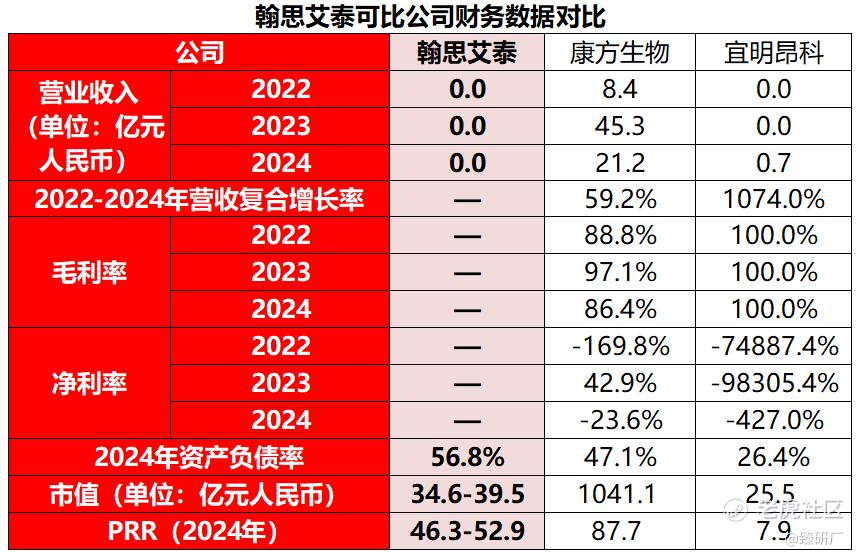 从估值角度看,翰思艾泰当前市值约为34.55-39.48亿元,远低于康方生物的1,041.1亿元,略高于宜明昂科的25.5亿元,康方生物凭借已落地的规模化营收和59.2%的营收复合增长率,其研发成果的商业化转化能力被市场高度认可,因此获得了更高的PRR值;翰思艾泰虽处于无营收的纯研发阶段,但PRR处于中间区间,说明市场对其研发管线的潜在价值仍有一定期待,不过其56.8%的资产负债率高于同行,一定程度上制约了溢价空间,宜明昂科尽管营收增速达1074.0%,但仅实现0.7亿元的小规模营收,商业化刚起步且净利率持续大幅亏损,使得PRR值相对较小。目前翰思艾泰暂未实现营收,在市值等方面相较于同行业龙头与可比公司均存在显著差距。不过,值得注意的是翰思艾泰的双功能抗体技术的全球首创性是核心产品的独特技术,随着后续临床数据持续优异,有望成为PD-1耐药细分赛道的全球领导者,如果公司产品实现从临床研发到商业化转化的关键跨越,将持续提升公司的核心竞争力与市场价值。
