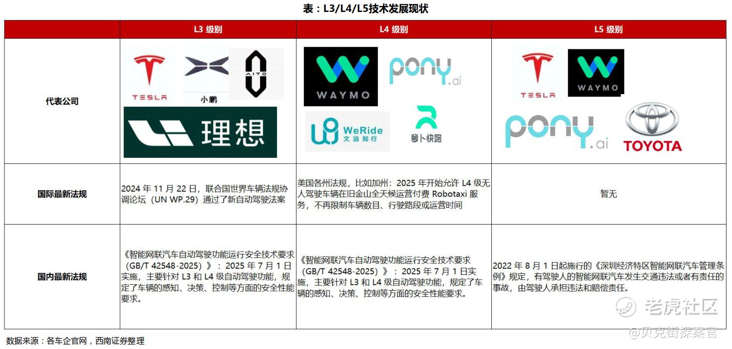 从产业角度看,美国在法律与责任边界尚未完全统一的情况下,选择以L4/Robotaxi商业化试运营作为突破口,而中国则是L4/Robotaxi商业化试运营和L3合规准入并行,同时加速全球自动驾驶从“工程问题”向“商业问题”转化。