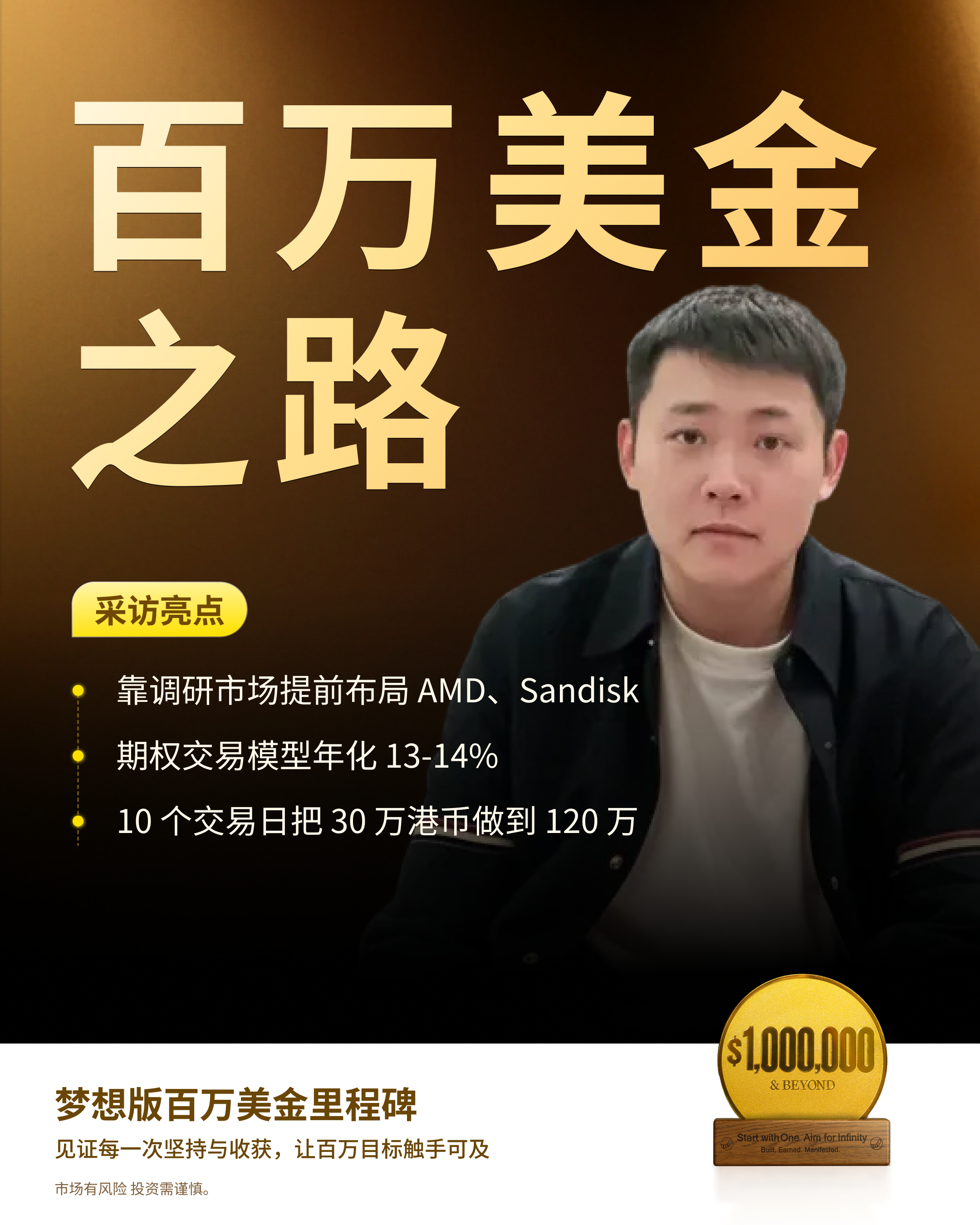 在港美股市场里,有人凭直觉交易,有人靠情绪冲浪,而 @AaronHy则属于那种让同行都会肃然起敬的类型——白天创业、晚上盯盘,用扎实调研与超强执行力在高波动的期权与科技板块中一次次穿越市场噪音。