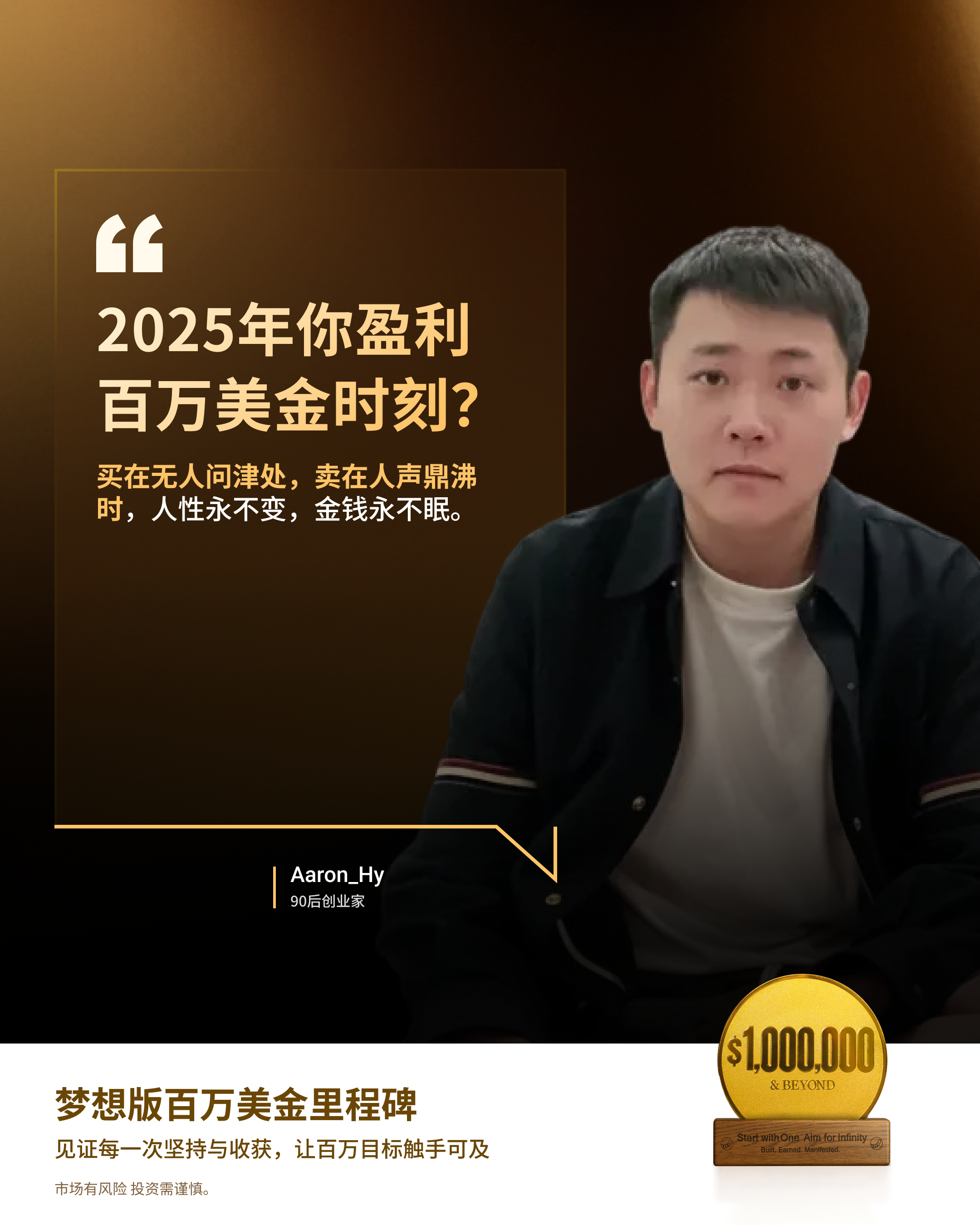 A:百万美金的收益其实已经有实现了,但在老虎还没有做到,所以在明年会把资金和精力放在老虎的交易上,希望在2026年实现百万美金的目标,我觉得这对一直关注我的粉丝也是一个激励。明年的交易我也会全力以赴,改掉盈利后喜欢松浪交易的毛病,专注的做美股市场。希望关注的粉丝也能拿到明年十万美金、百万美金的礼品。感谢粉丝。
