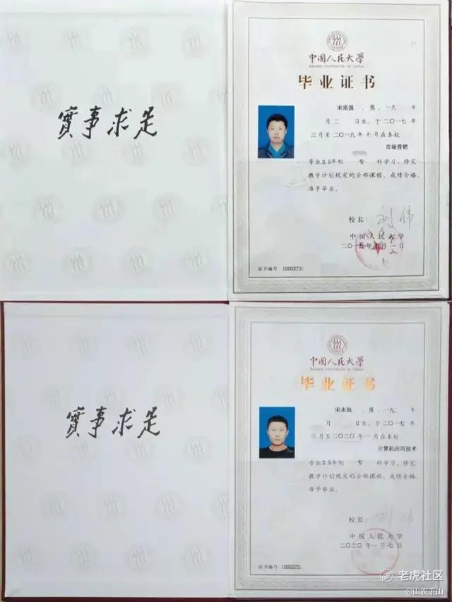 两人分别是京东物流青岛智能物流园的车辆维修师和分拣中心运营支持,一个是初中学历,一个是中专学历。2017年,他们通过“我在京东上大学”项目分别攻读了市场营销和计算机应用技术专业,最终,50岁的父亲和26岁的儿子同时拿到了中国人民大学毕业证。