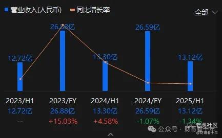 2022-2024年,公司收入分别为23.36亿元、26.88亿元和26.59亿元,三年收入复合增速较低,且2024年出现同比微降1.1%。2025年上半年收入13.12亿元,同比继续下滑1.34%。